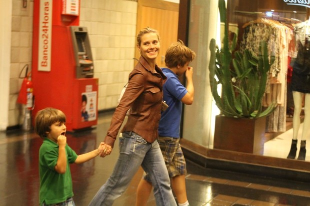 Carolina Dieckmann vai ao cinema com os filhos no Rio